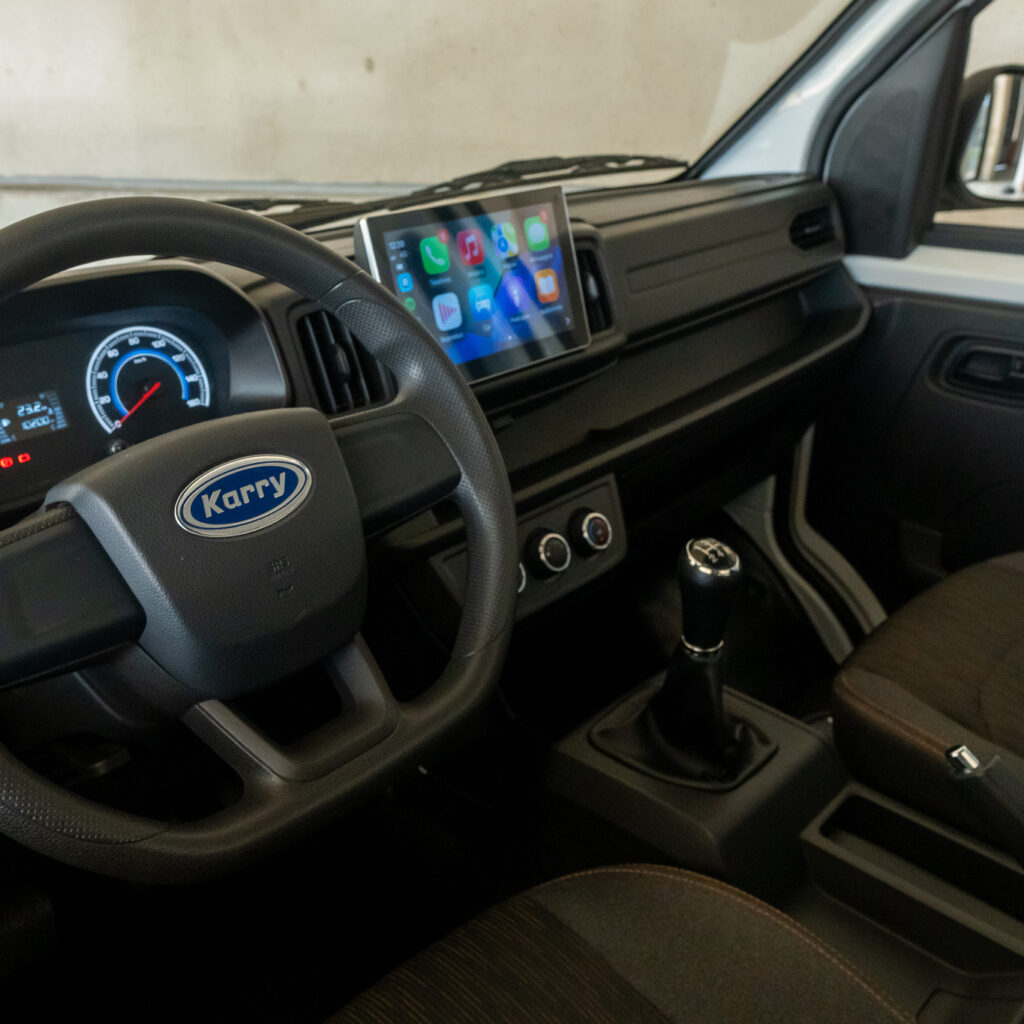 O interior da LOG CD foi pensado para tornar a rotina mais prática e confortável. O modelo conta com vidros e travas elétricas, ar-condicionado e um sistema de multimídia compatível com Apple CarPlay e Android Auto, garantindo conectividade, entretenimento e facilidade de uso durante toda a jornada.